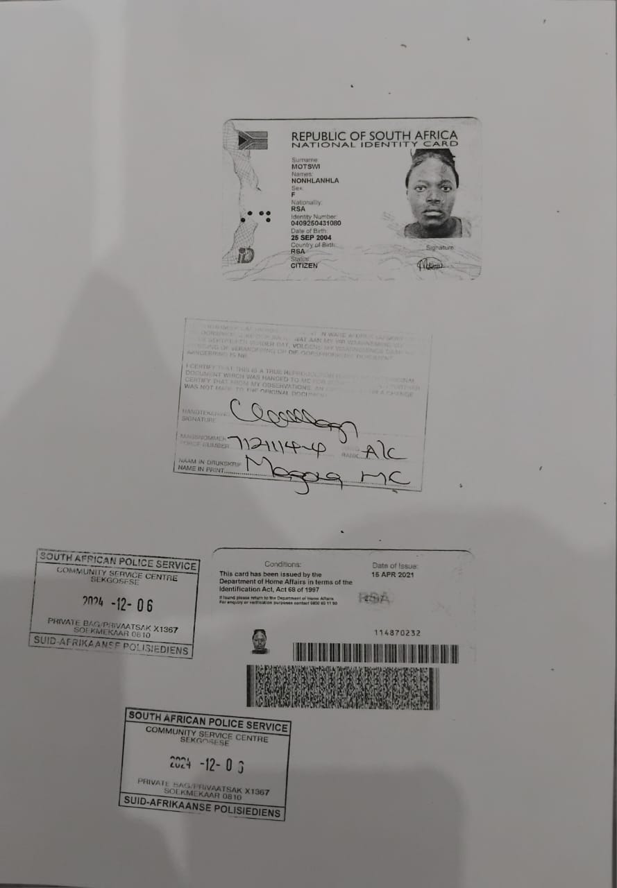 Next of Kin Name & SurnameDikeledi Motswi